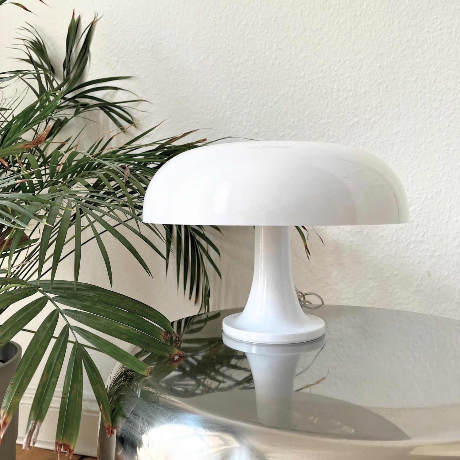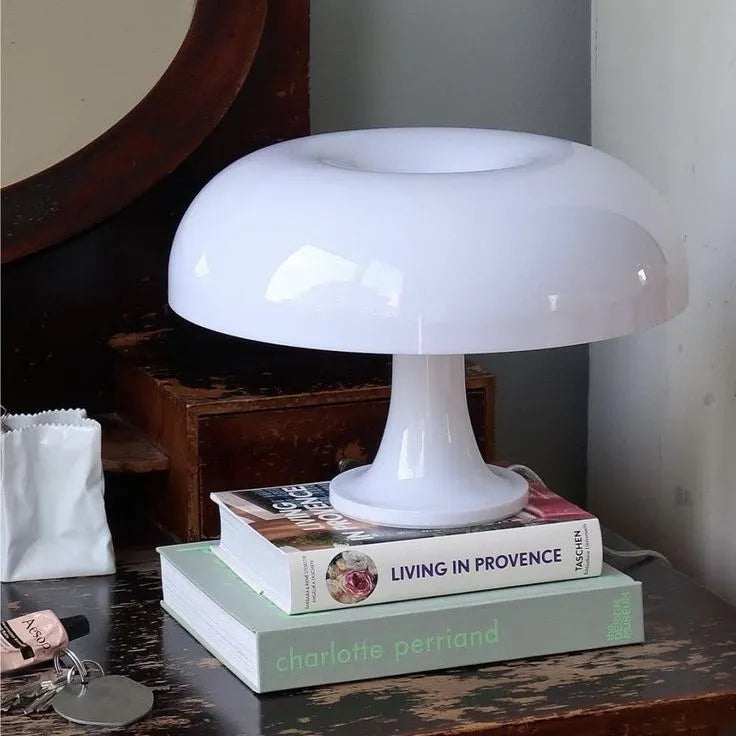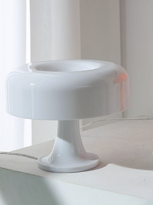 La Blanche är en retroinspirerad bordslampa med en ikonisk svampformad skärm som sprider ett mjukt och behagligt ljus. Den blanka, sofistikerade finishen ger lampan ett elegant uttryck som lyfter både moderna och klassiska interiörer.